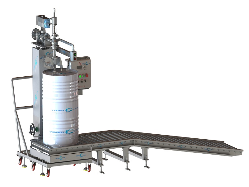 涂料灌装机的操作流程:人工移上桶;手动启动;自动开启输料泵及大小给料阀门;到设定工作点1关快给料阀门;到设定工作点2停输料泵并关慢给料阀门;人工加盖移桶至压盖位...